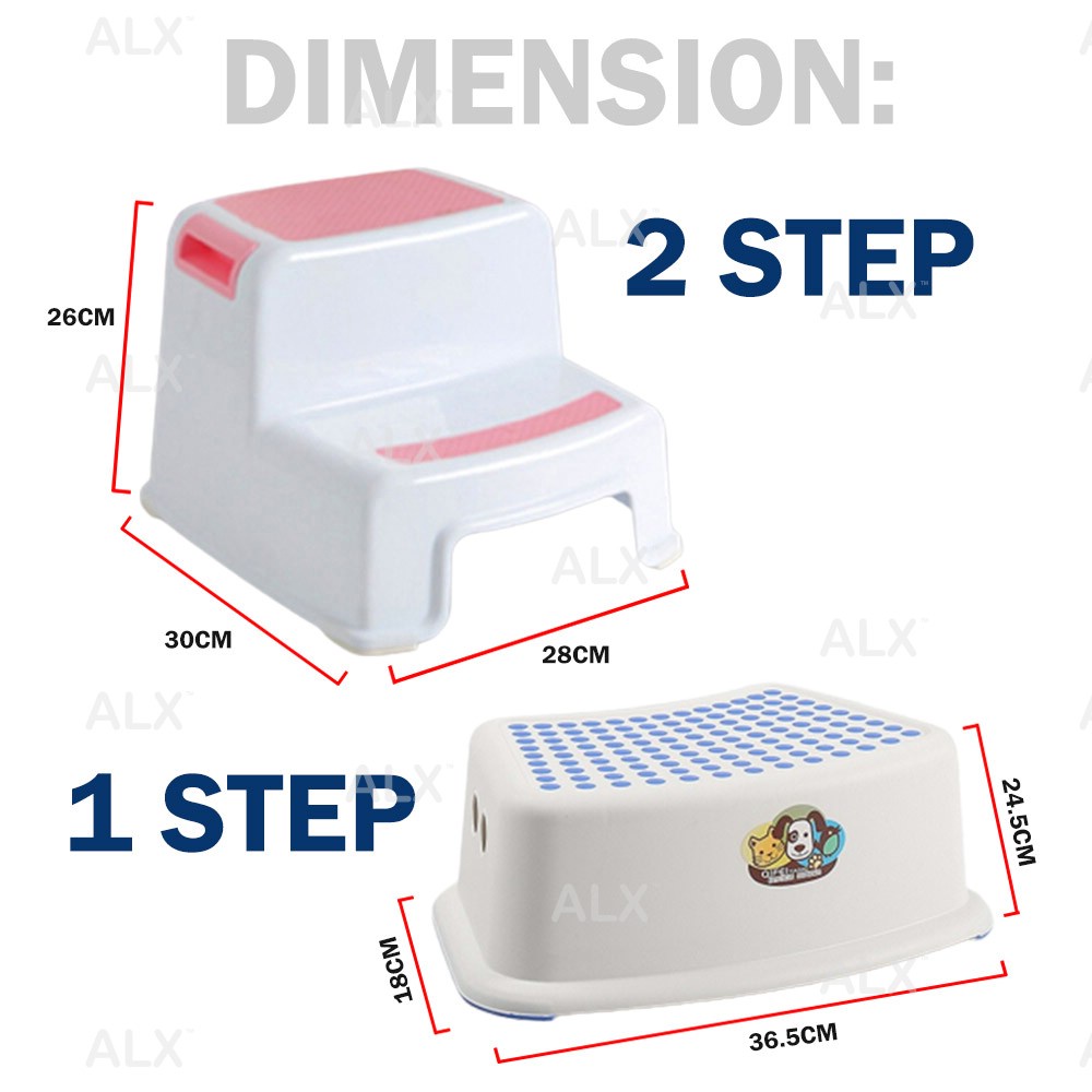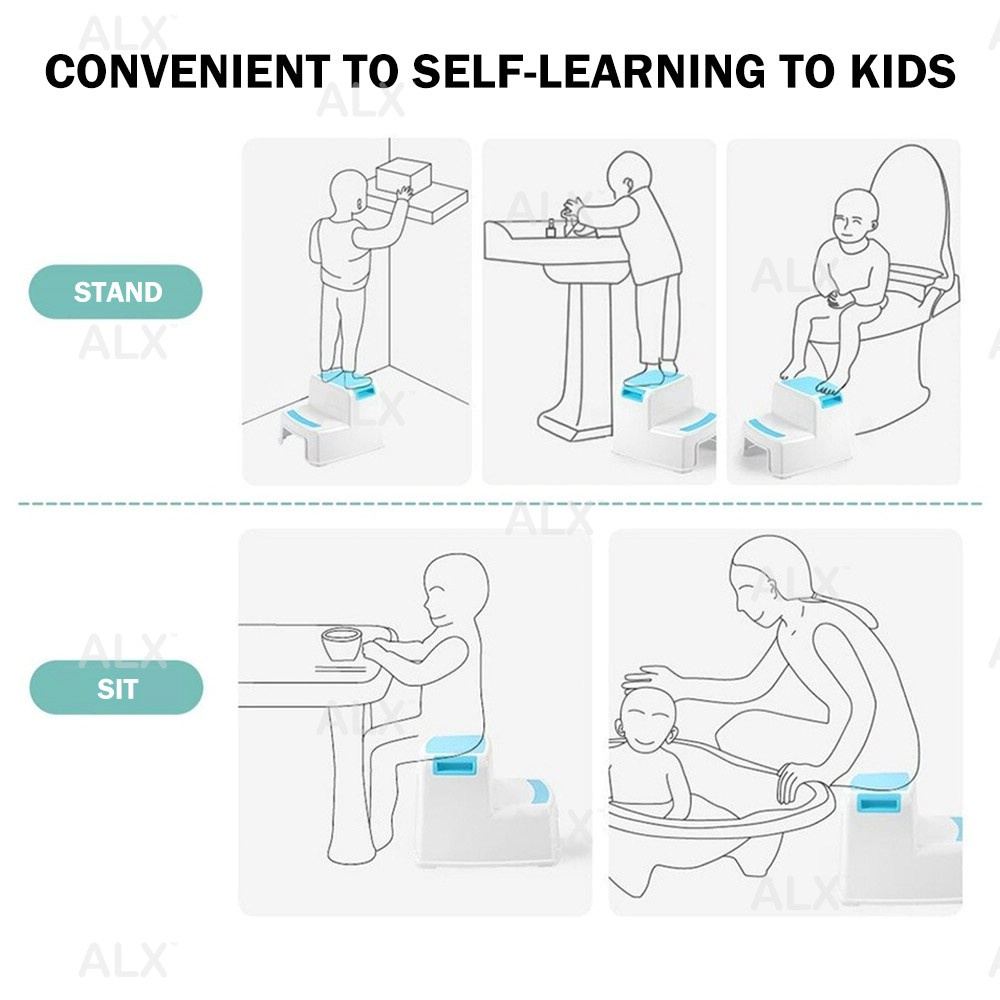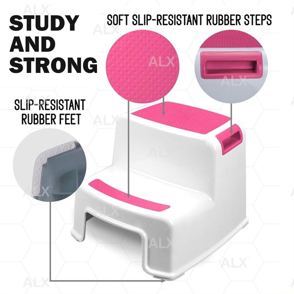 ALX EXTRA SAFE Toddler Toilet Potty Training Stool Bathroom Kitchen 2 Step Kids Step Anti-Slip Step Chair Bangku