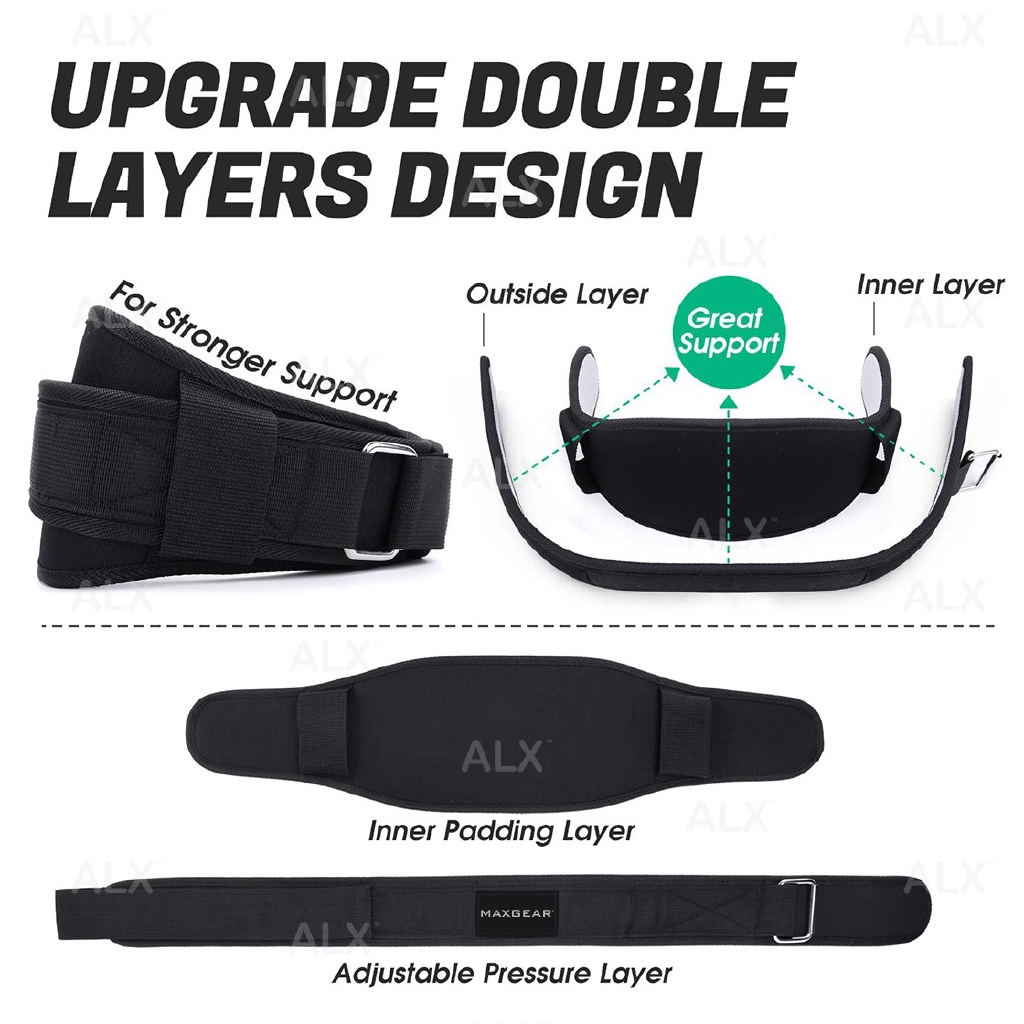 ALX MAXGEAR Weightlifting Waist Belt Adjustable Gym Fitness Squat Training Strong Lumbar Back Support Tali Pinggang