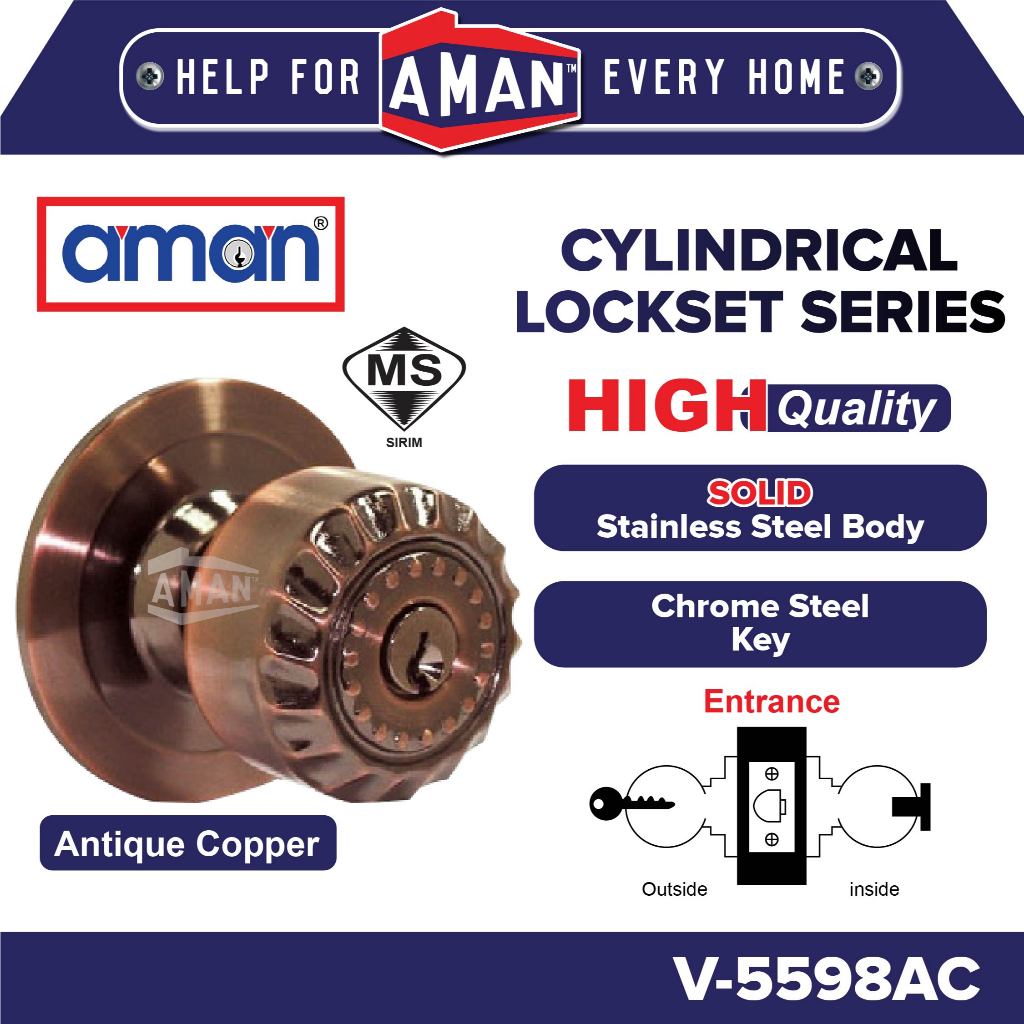 AMAN Big Rose Cylindrical Door Knob Lock Set Entrance Storeroom Privacy Knobset Door Lock Lockset Tombol Pintu SIRIM