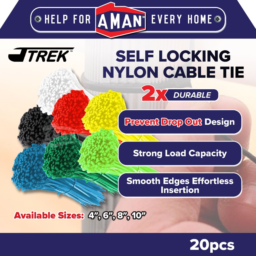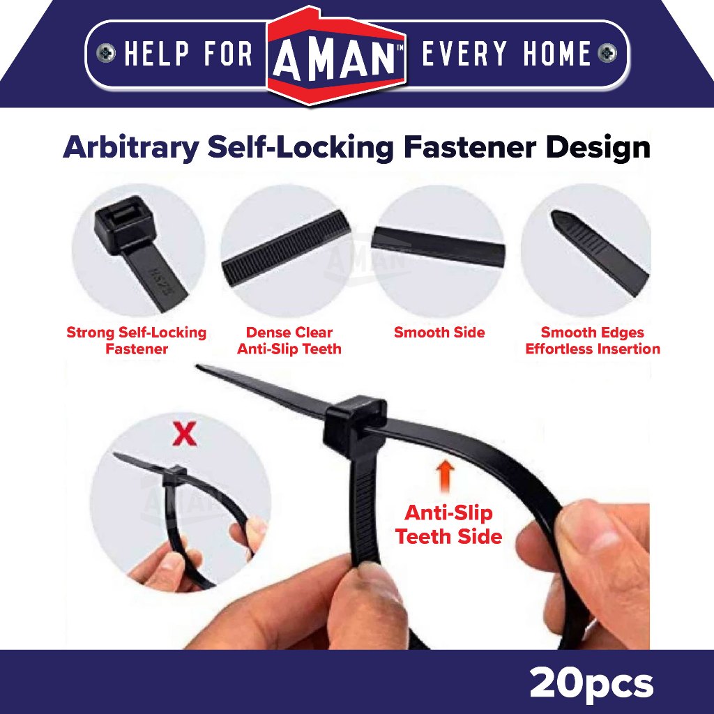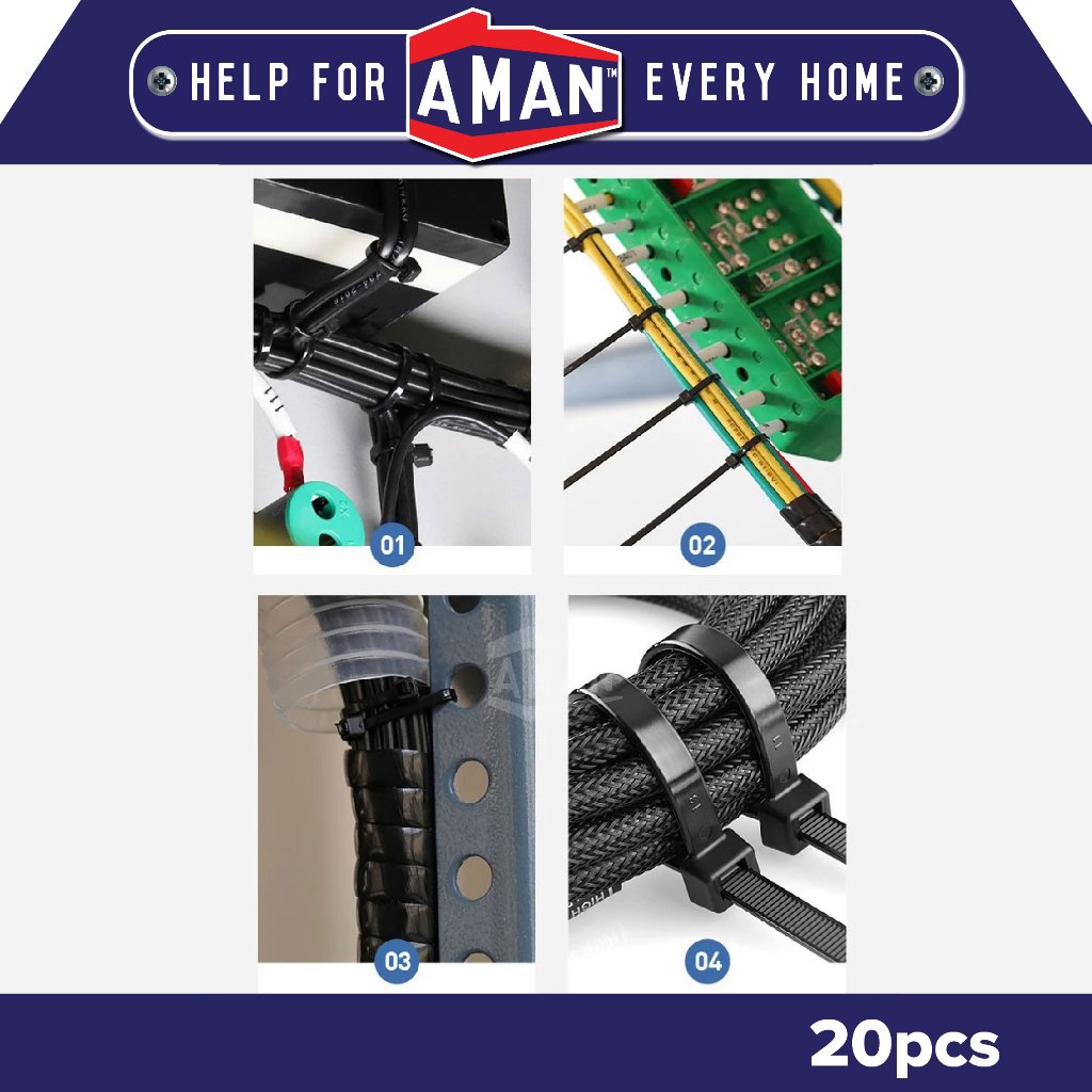 AMAN Cable Ties Nylon Wire 20pcs 4"6"8"10" Pengikat Wayar Kabel Tie Locking Zip Black White Garden Home Wiring Bind