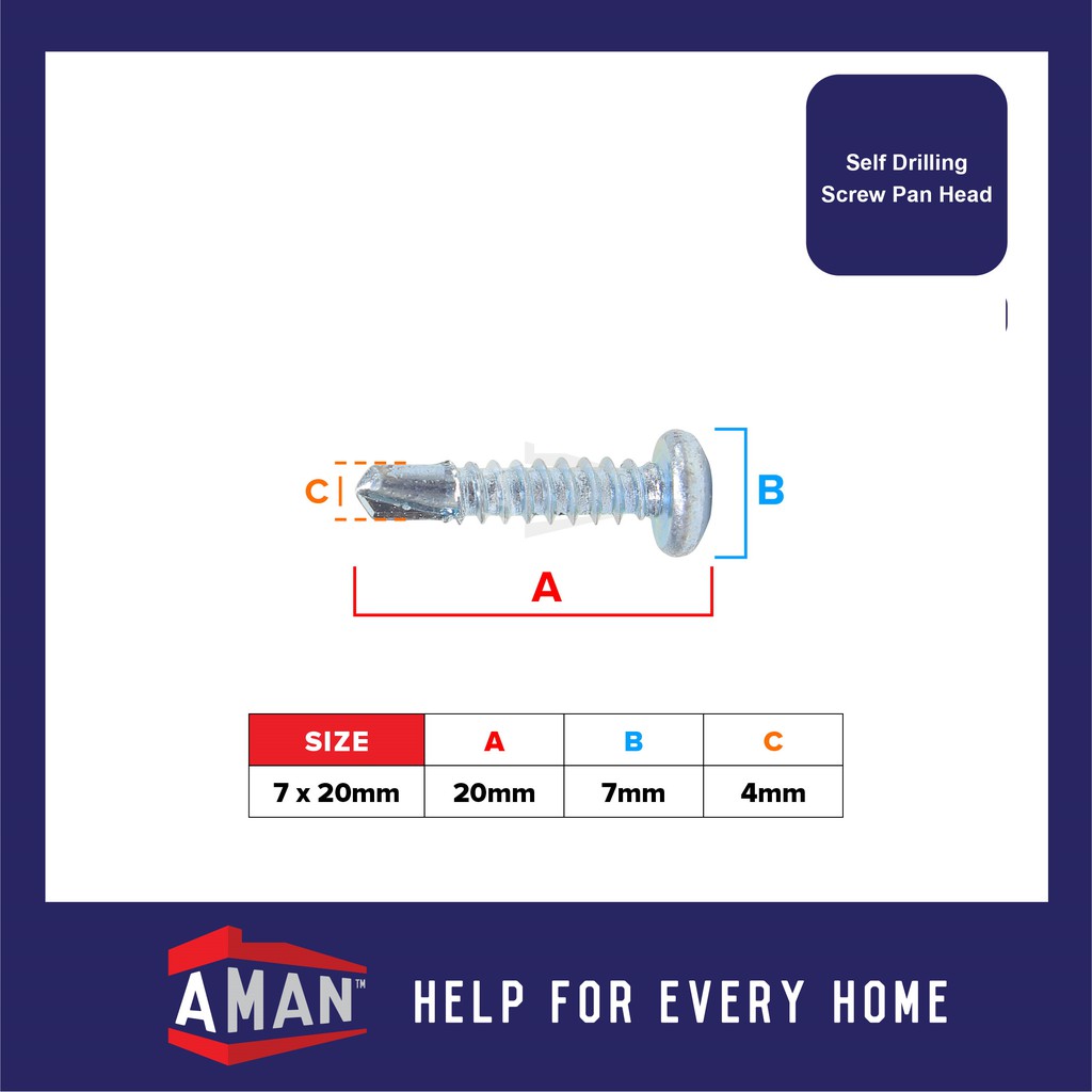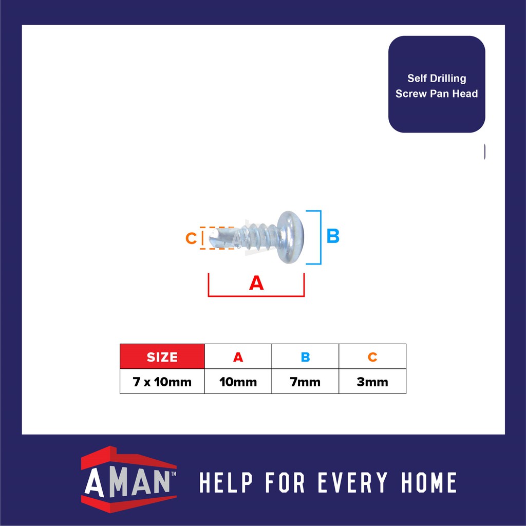AMAN MK Self Drilling Screw Flat Head Pan Head Sheet Metal Aluminium Awning Drill Screw Skru Tebuk Bumbung Besi
