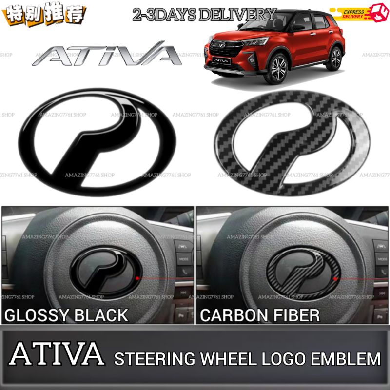 AMAZING ATIVA PERODUA STEERING WHEEL LOGO EMBLEM FRAME COVER STEERING EMBLEM LOGO BADGE DECAL GARNISH ACCESSORIES