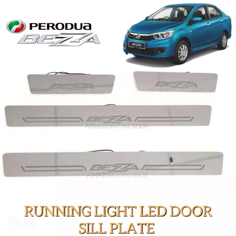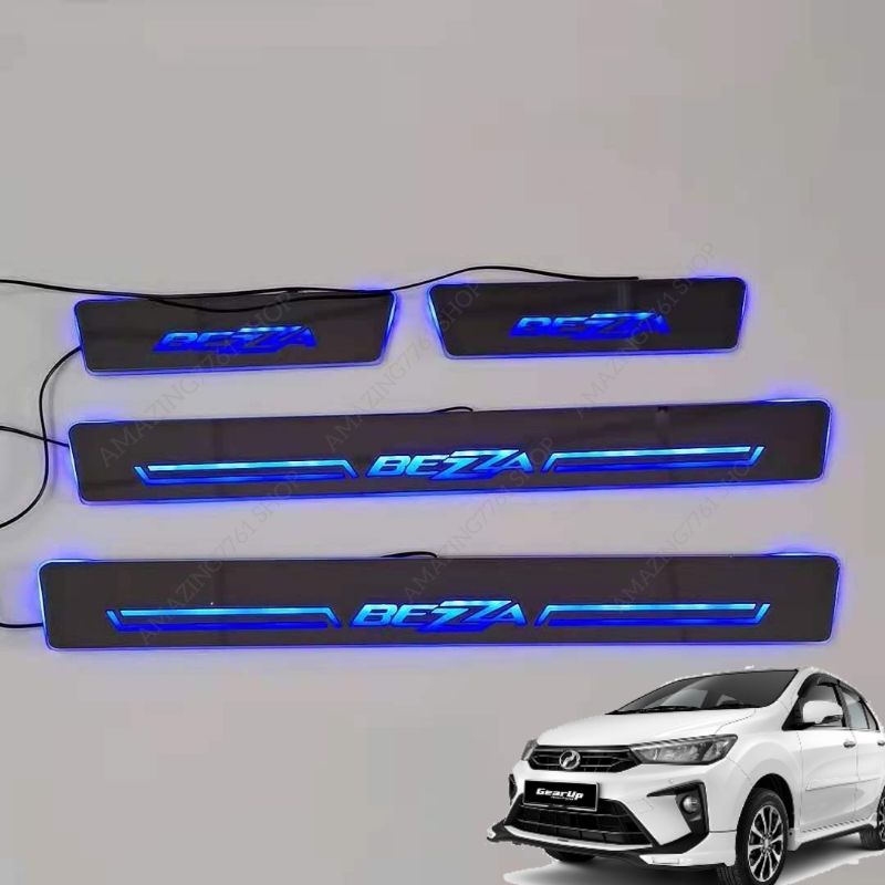 AMAZING PERODUA BEZZA CAR RUNNING LIGHT BLUE LED RED LED DOOR SIDE STEP SILL PLATE DOOR SIDE SILL PLATE ACCESSORIES