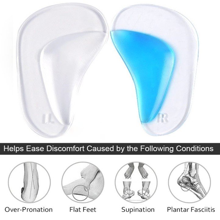 AMC Arch Support Shoe Insoles for Flat Feet Gel Arch Inserts Plantar Fasciitis Adhesive Arch Pad for Relieve Pressure