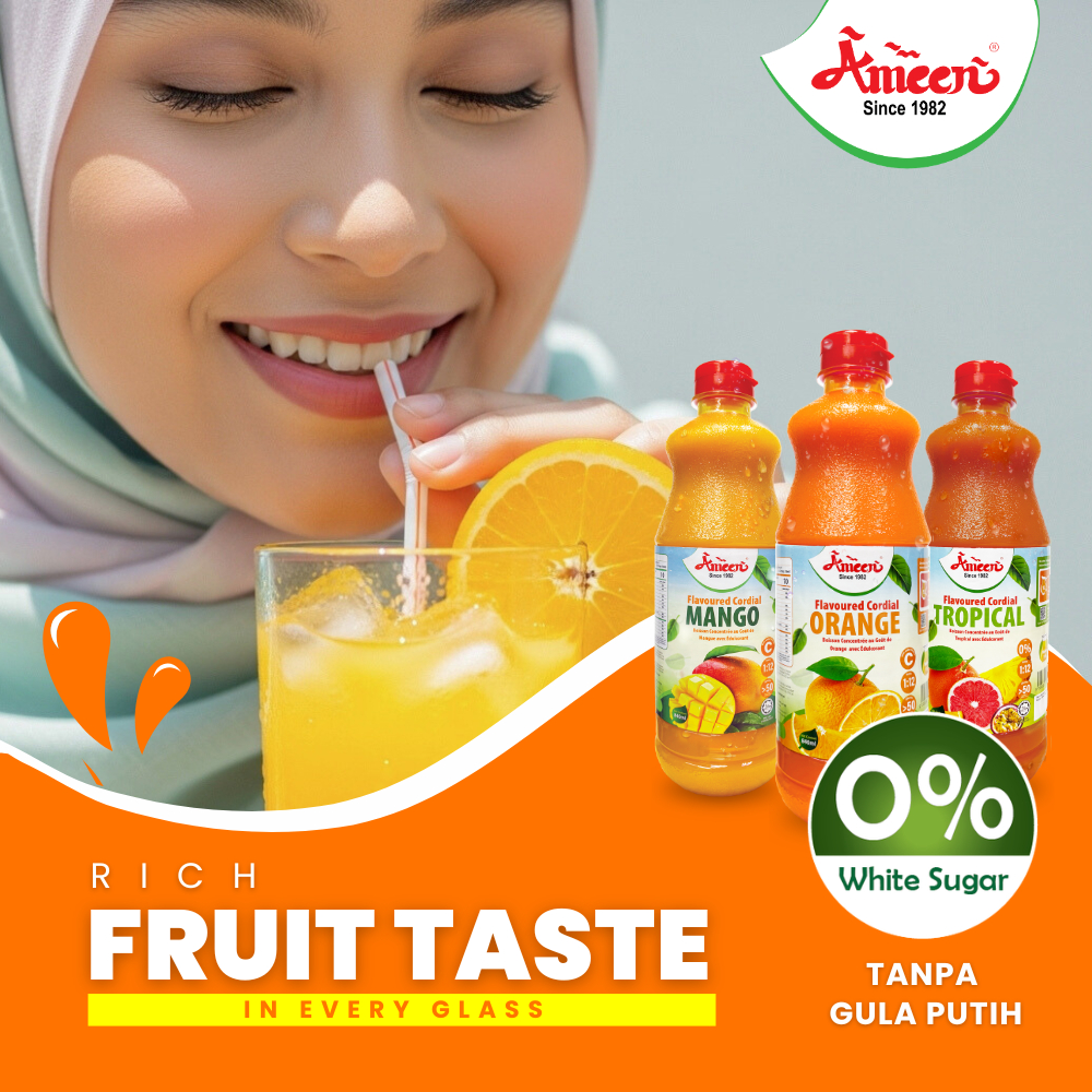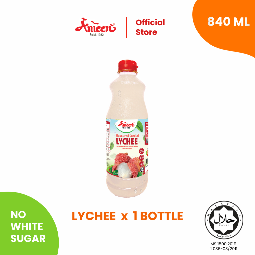 AMEEN Flavoured Cordial Concentrate - Lychee - 840ml | Kordial Ameen Laici 840ml