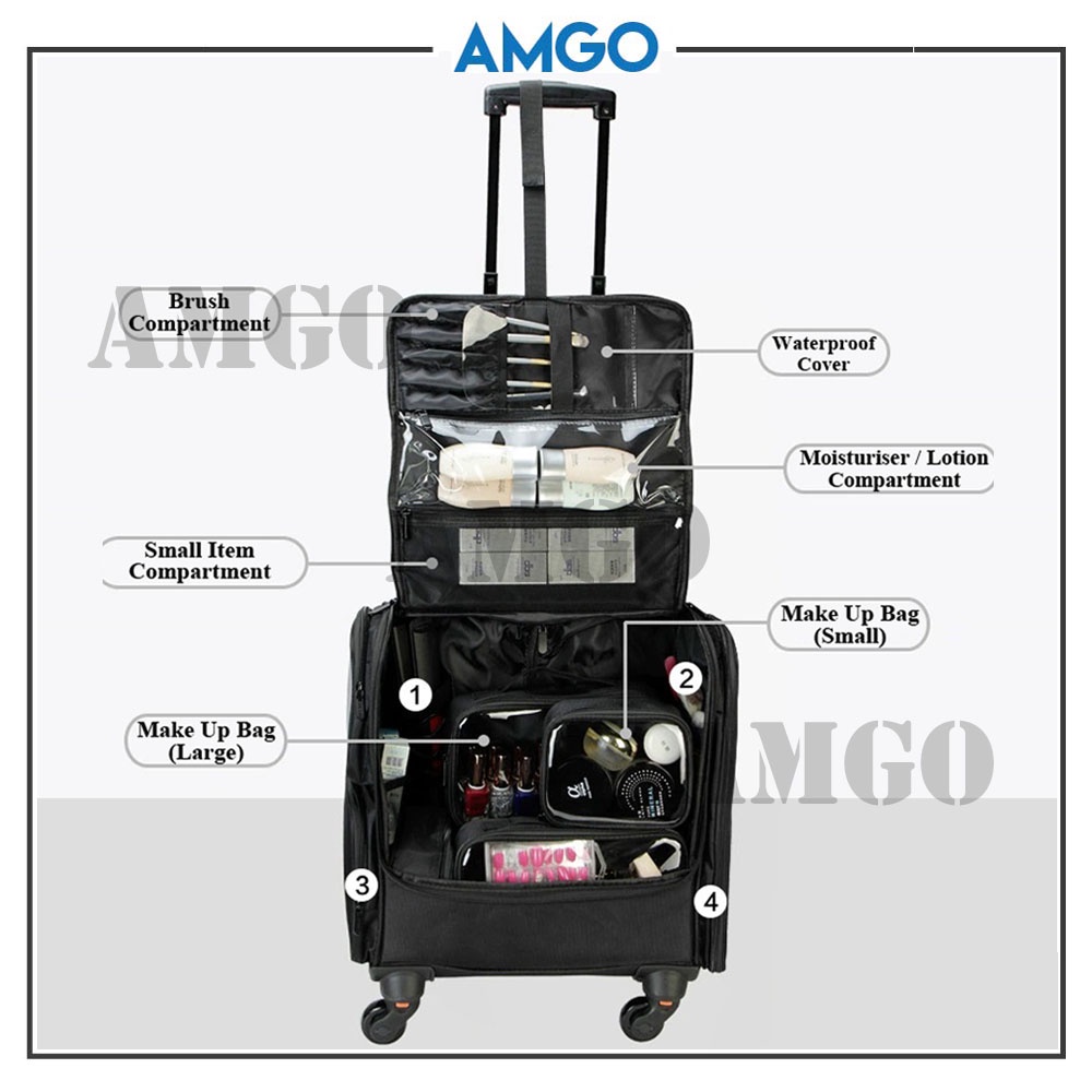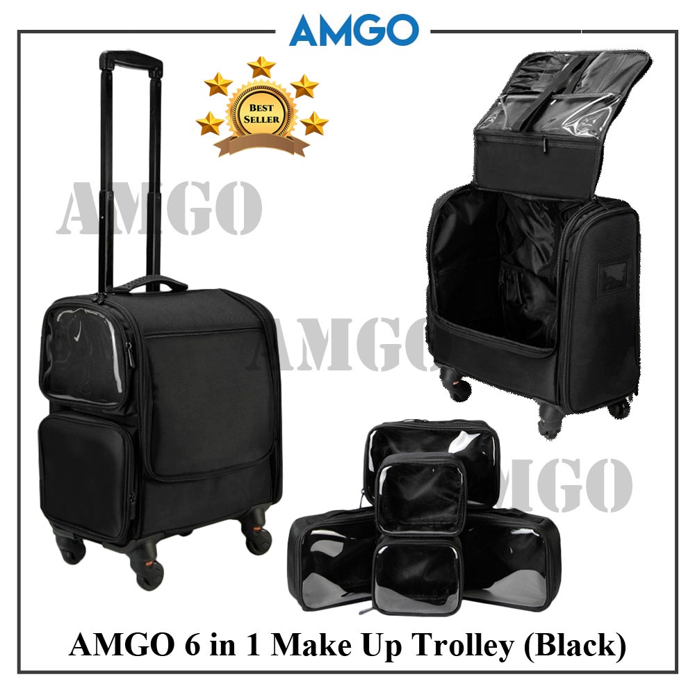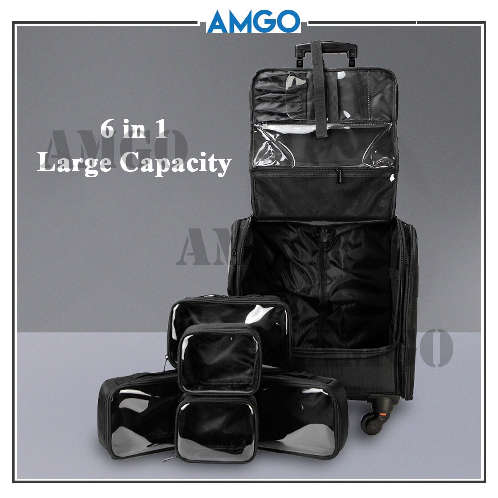 AMGO 6 in 1 Professional Makeup Artist Tool Box Make Up Organizer Beauty Storage Make up Trolley [Black]