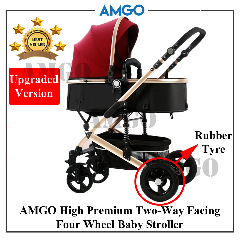 AMGO Baby Stroller High View Detachable Bassinet Anti-Shock Lightweight Two-Way [HIGH PREMIUM UPGRADED VERSION] [RED]