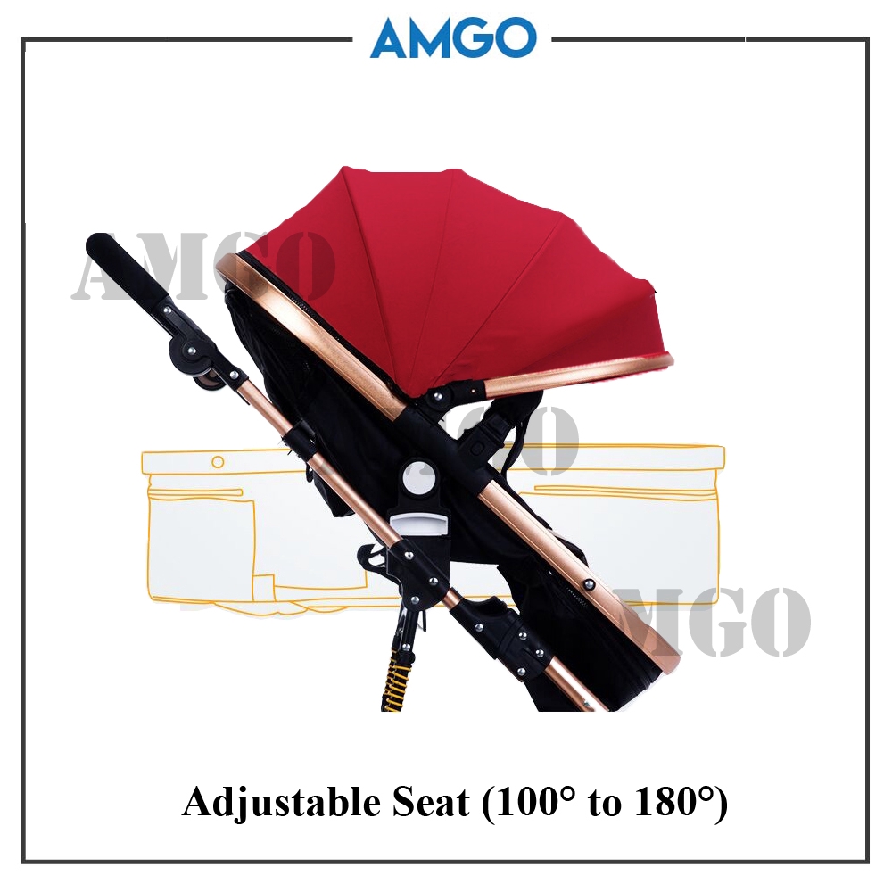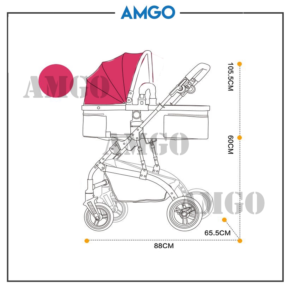 AMGO Detachable Lightweight Two-Way Four Wheels Baby Stroller PRAM [RED]
