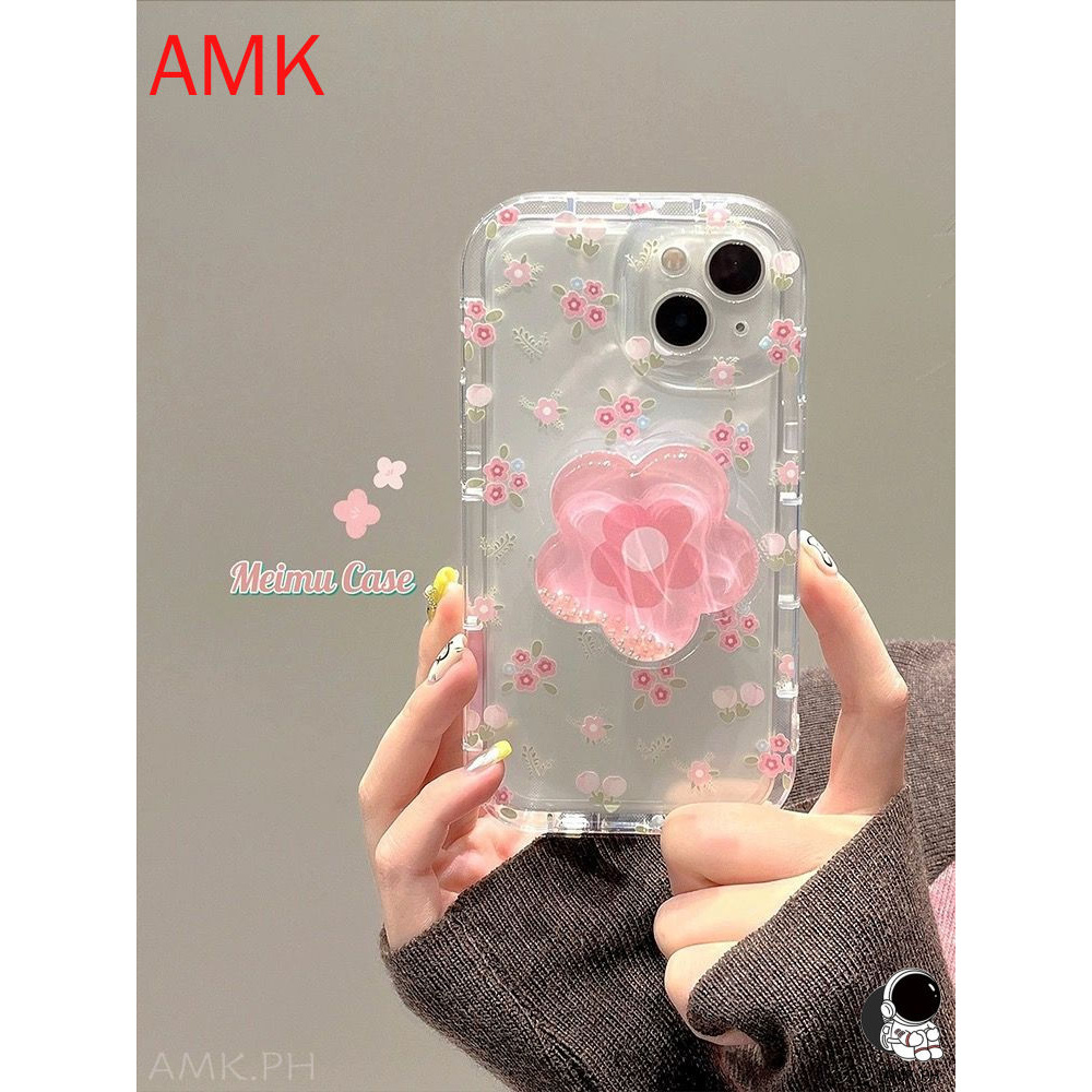 AMK Airbag phone case Samsung S25 S24 S23 S22 S21 S20 FE S10 NOTE 10 20 ULTRA PLUS A55 5G clear aesthetic Pink flowers lens protection Shockproof Soft phone Case GNCFZ