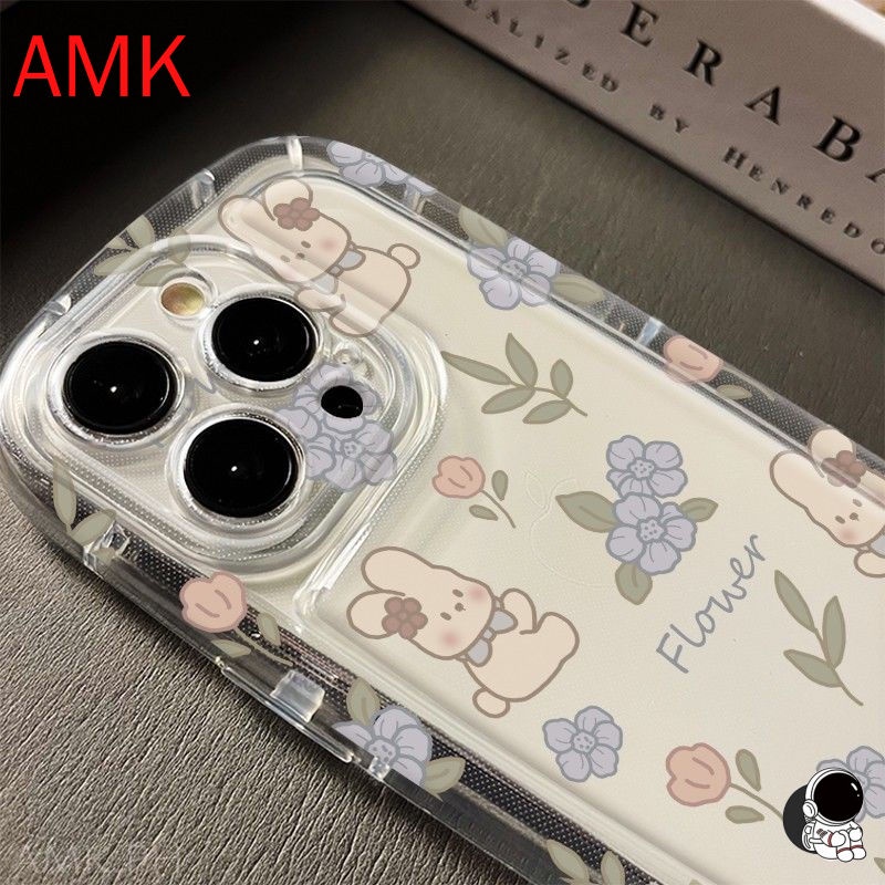 AMK Airbag phone case Samsung S25 S24 S23 S22 S21 S20 FE S10 NOTE 10 20 ULTRA PLUS A55 5G clear Cute Rabbits & Flowers Camera lens protection Shockproof Soft phone Case GNCFZ