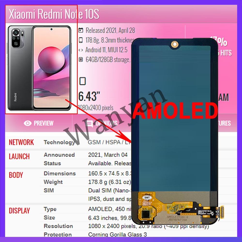 OEM AMOLED/TFT For Redmi Note 10 4G Note 10S Note 10 5G LCD Display Touch Screen Replacement