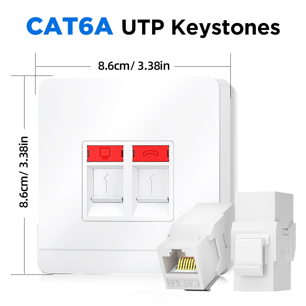 AMPCOM 86*86mm Wall plate with CAT6A Keystone Jack Kit, Tool Free Wall Faceplate With CAT6A 10Gbps UTP Ratchat Keystone Jack, Pass through Keystone Module faceplate