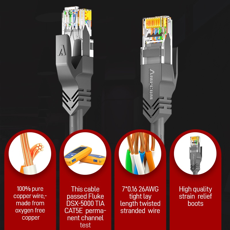 AMPCOM CAT5E Network UTP Set Patch Cord Cables for Desktop Computers Modem Router