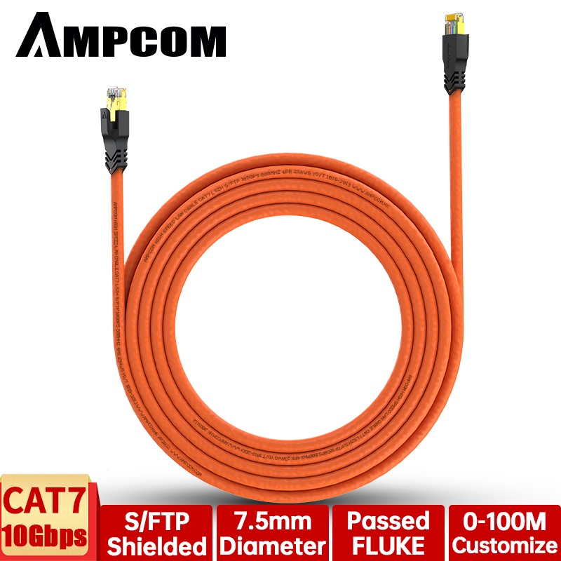 AMPCOM CAT7 CAT6A Ethernet Patch Cable S/FTP 23AWG 10Gbps Screened Solid Cable (10-30M)