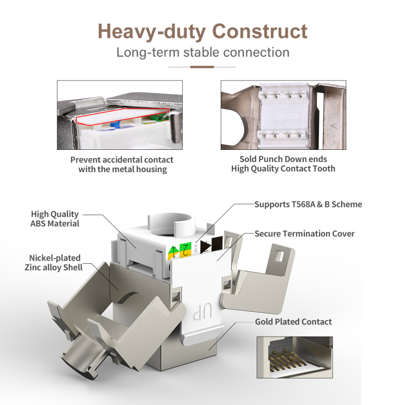 AMPCOM CAT7 Keystone Jack Fluke DSX 8000 Passed AMPCOM Shielded Zinc-Alloy RJ45
