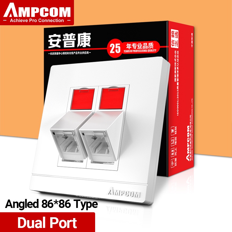 AMPCOM Fiber Optic Angled Wall Plate LC SC FC ST Simplex Duplex FTTH Coupler Adapter Keystone
