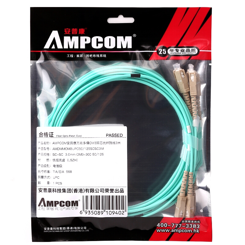 AMPCOM Fiber Optic Patch Cable, (SC-LC,LC-LC,SC-SC), 10G Gigabit Fiber Optic Cables with Multimode OM3 Duplex 50/125 LSZH, OD 3.0mm