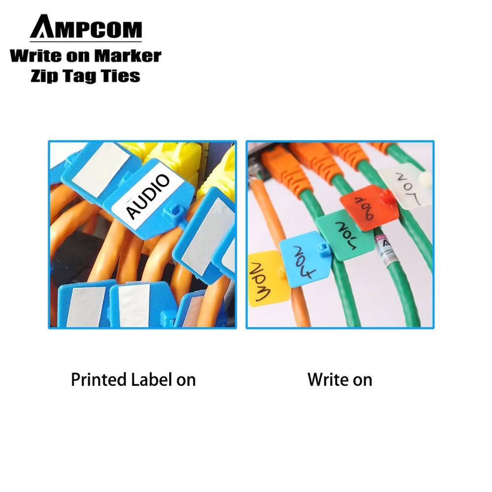 AMPCOM Nylon Zip Ties Cable Label Mark Tags Write on Ethernet Wire 5 Colours (4.72") [Free Printable Labels]
