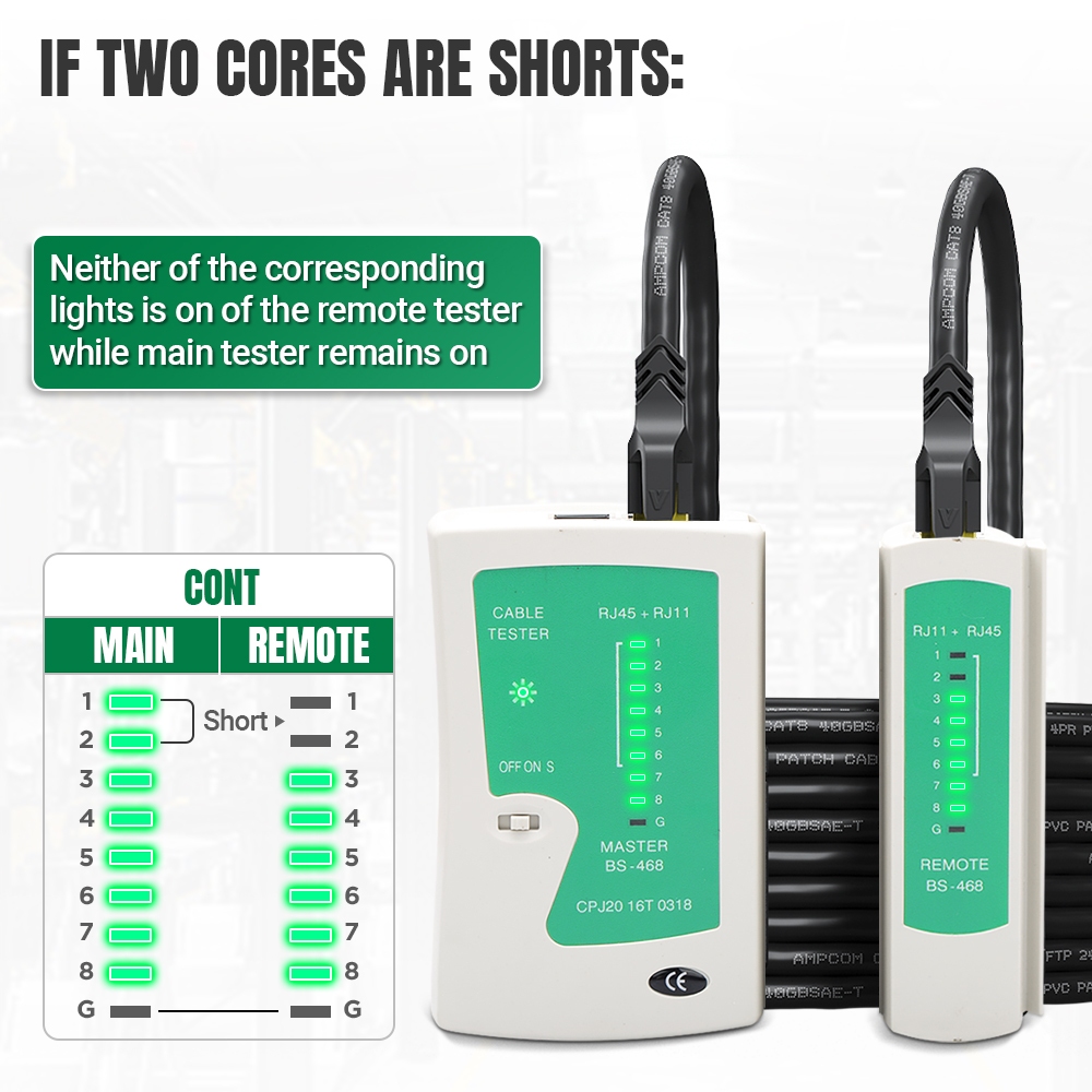 AMPCOM RJ45 Network Cable Ethernet Tester Tool for CAT5 CAT6 CAT7 8P 6P LAN Cable and RJ11