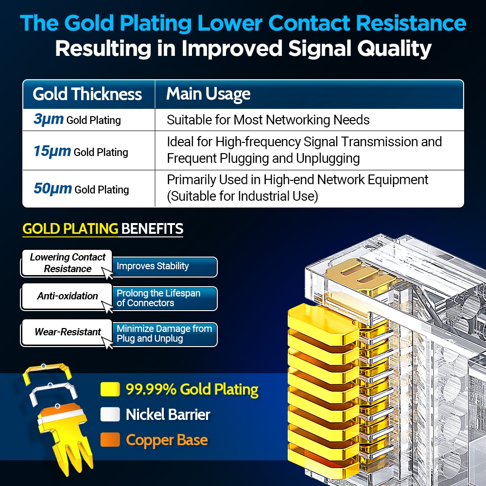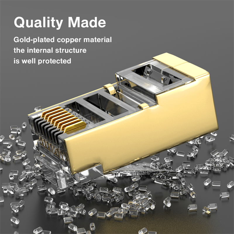 AMPCOM Shielded RJ45 CAT5E Modular Plug Connector 8P8C Crimp End Ethernet Cable Gold-Plated 50U