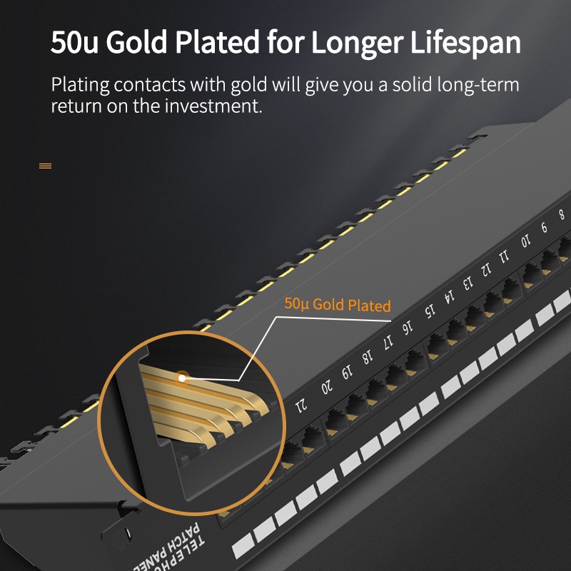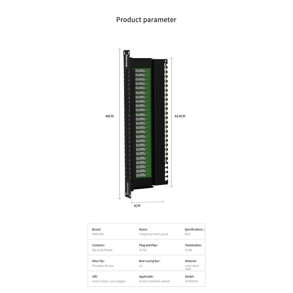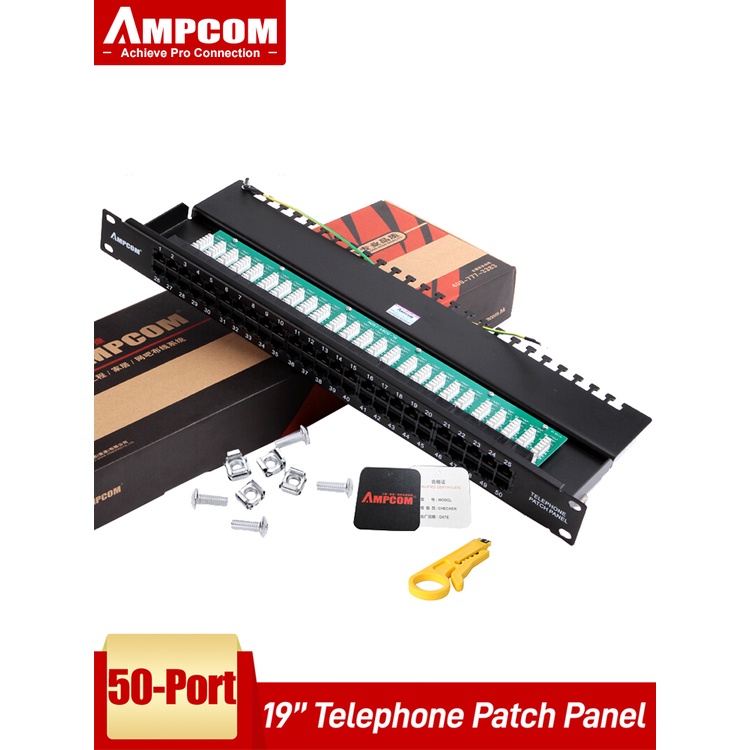 AMPCOM Telephone Gold-Plated Voice Patch Panel Rack 50U RJ11 RJ45 8P4C 6P4C, RJ11 1U CAT3 25/50 Ports (19")