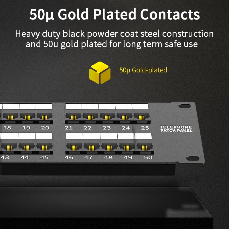 AMPCOM Telephone Voice 25/50 Ports Patch Panel, Cabinet Rack Mount - 1U/2U, 19 inch, RJ11 ModularJack, 50u Gold Plated