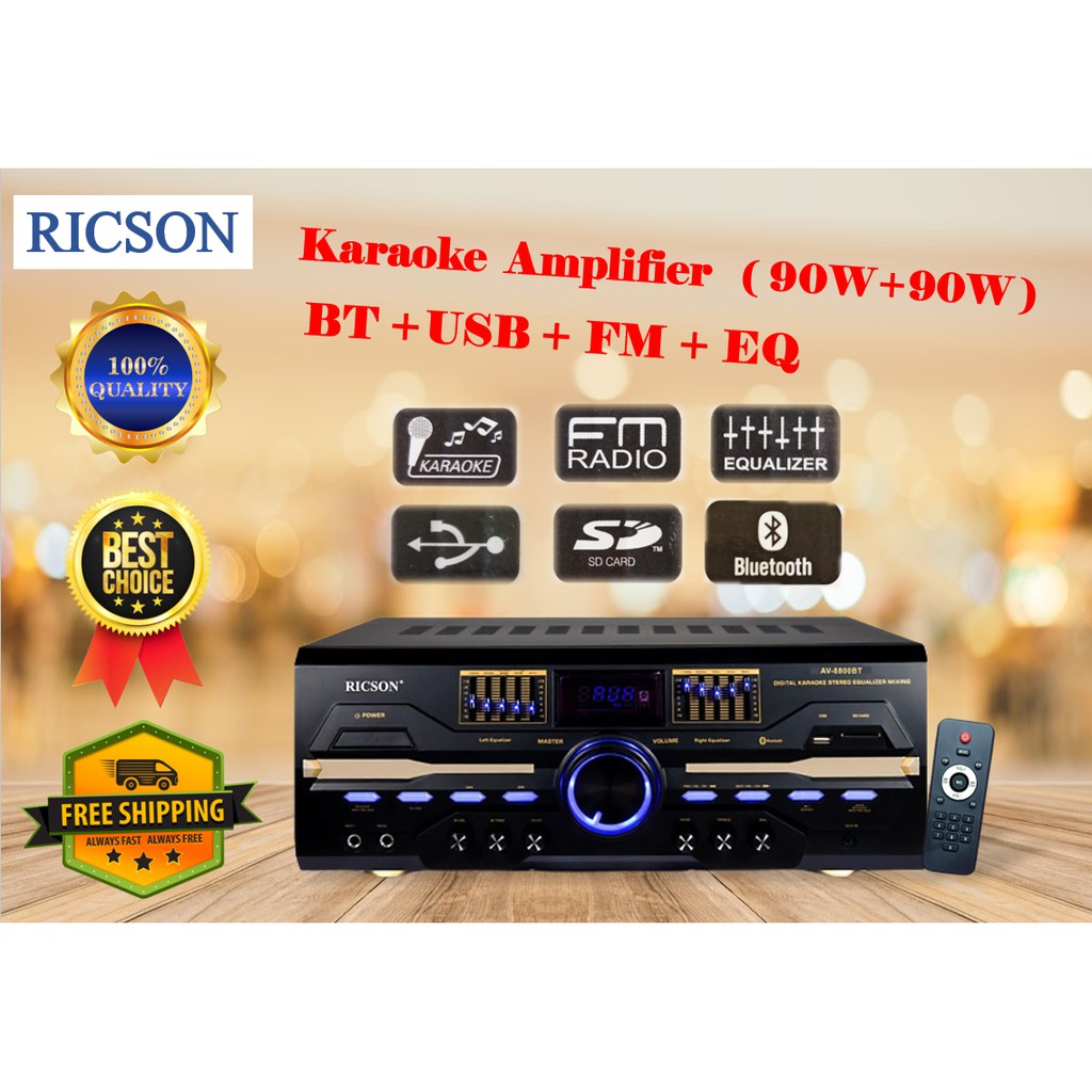 AMPLIFIER / AV-8800 / RICSON KARAOKE AMPLIFIER WITH REMOTE CONTROL / BLUETOOTH / USB / FM Radio / EQ / LED Light