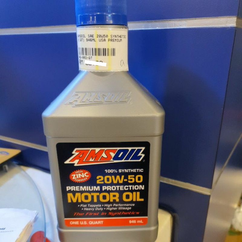 AMSOIL 100% Synthetic SAE 20W-50 / 20w50 PREMIUM PROTECTION SYNTHETIC MOTOR OIL 1QT / 946ml