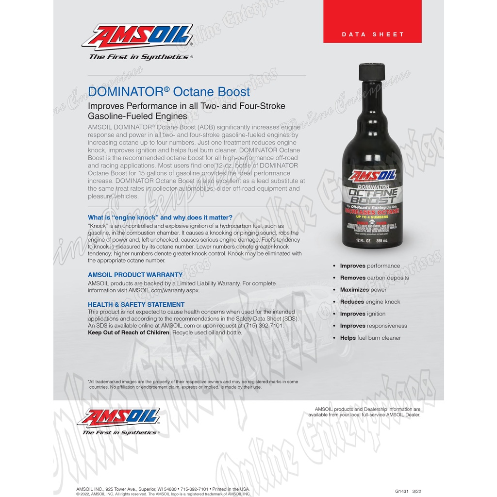 AMSOIL DOMINATOR Octane Boost 12oz (354ml) – Octane Booster Fuel Additive for Car Engine Performance