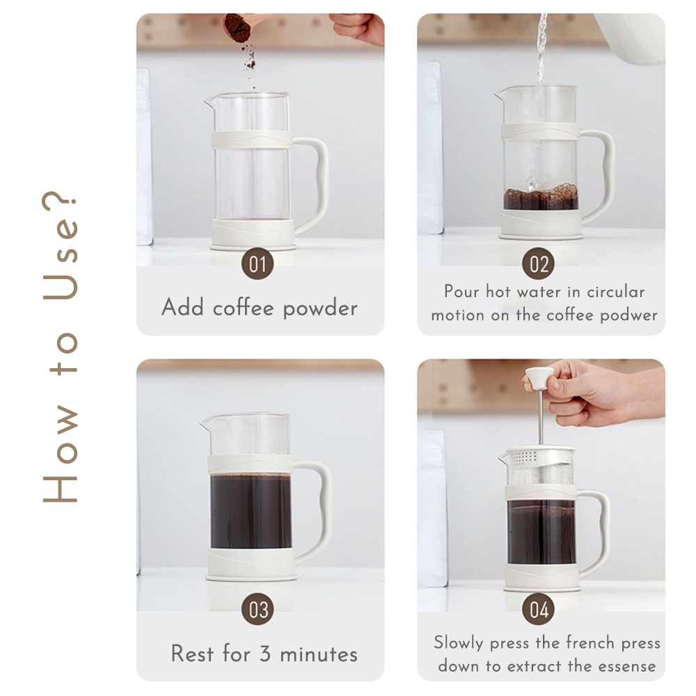 AMUZE White French Press Coffee Press Espresso Maker Glass Teapot Tea Pot Latte Milk Frother Foam Maker