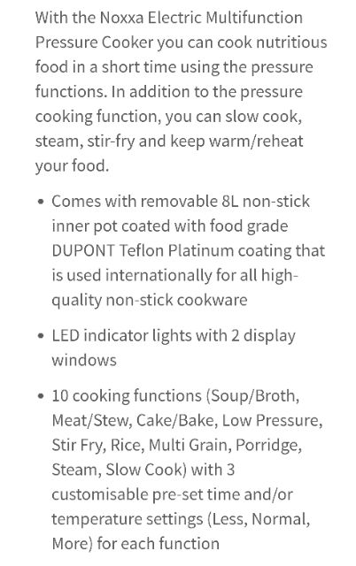 AMWAY NOXXA electric Multifunction Pressure Cooker (Slow Cook, Stir Fry, Steam)