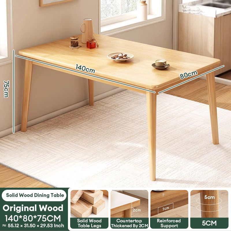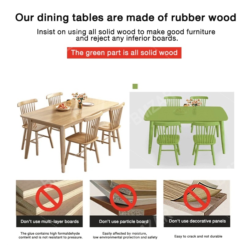 𝐁𝐌𝐙𝐀𝐑 Modern Simple Solid Wood Dining Table Rubber Wood Meja Makan Square Table实木餐桌