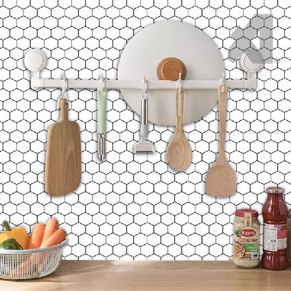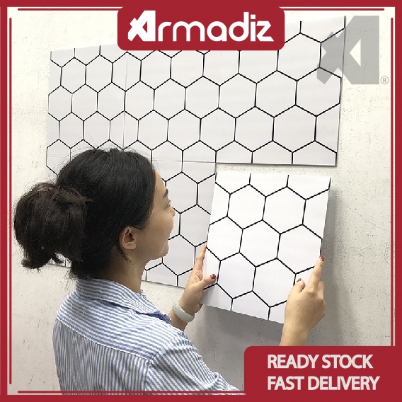 AMZ 3D Effect Hexagon Pattern Self Adhesive Wall paper Dinding Water Resistant Kitchen Wall Tile Cafe/Kopitiam Wallpaper