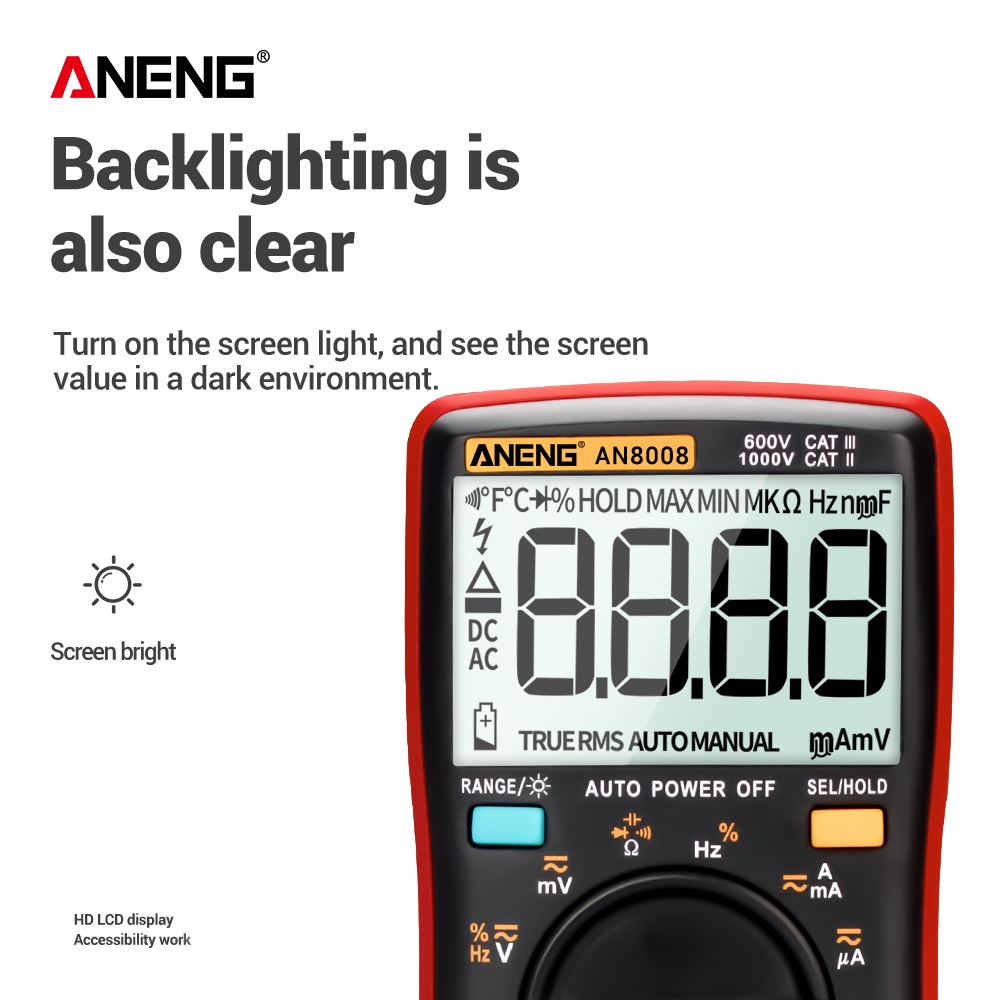 ANENG AN8008 Digital Multimeter 9999 counts True-RMS Square Wave Backlight AC DC Voltage Ammeter Current Ohm Auto/Manual