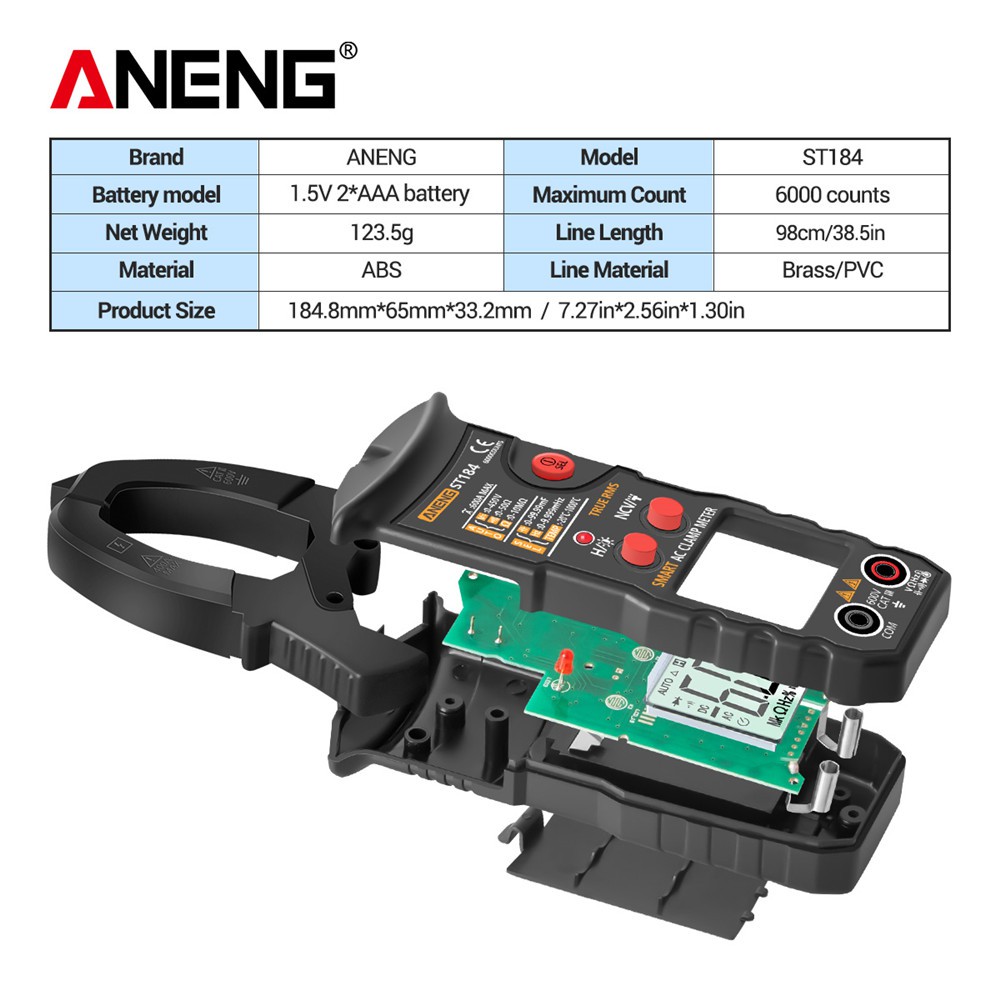 ANENG ST184 digital clamp meter multimeter true RMS 6000 counts multi-function high precision professional measuring instrument AC/DC voltage AC current HZ Ohm capacitor