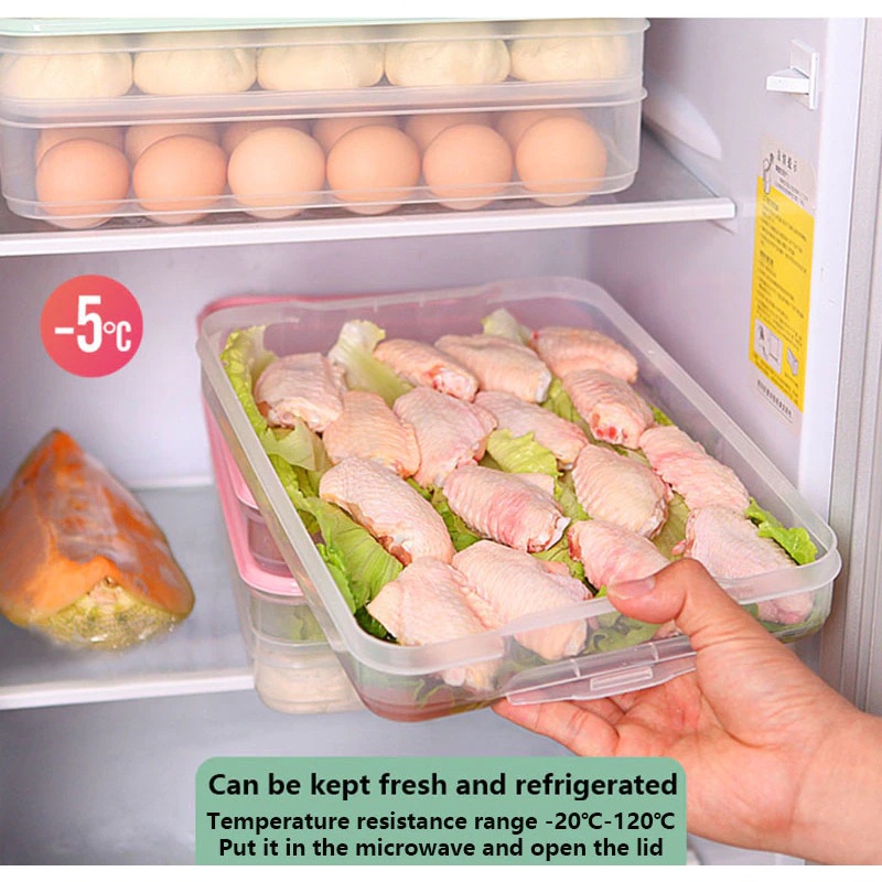 ANGEL Refrigerator Storage Box Food Container Freezer Space Saver Dumplings Boxes Single Layer Container Bekas Plastik