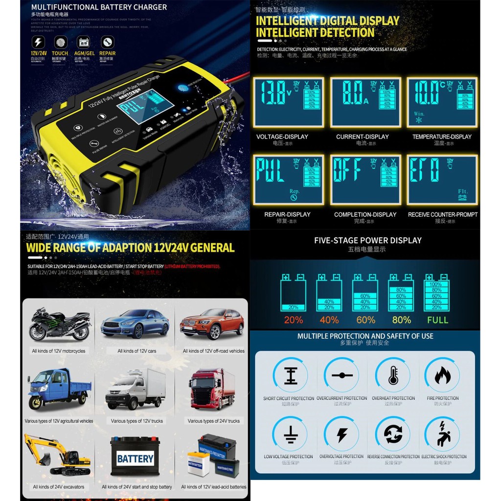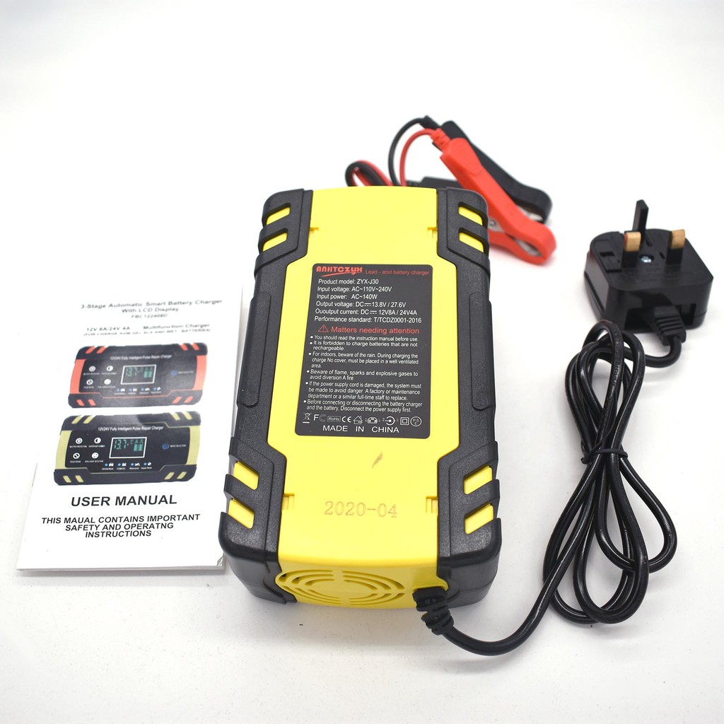 ANHTCzyx Car Battery Charger 12 24V 8A LCD Automatic Intelligent Pulse Repair Lead Acid AGM Gel Wet