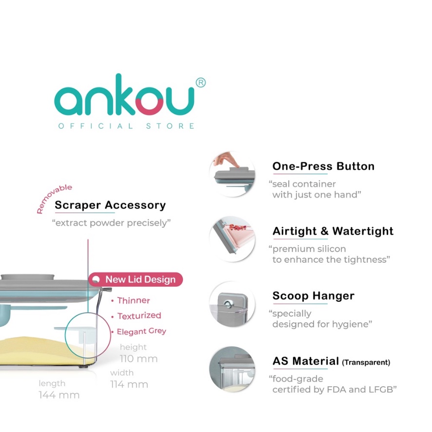 ANKOU Air Tight Milk Powder Container with Scraper - Rectangle Scraper