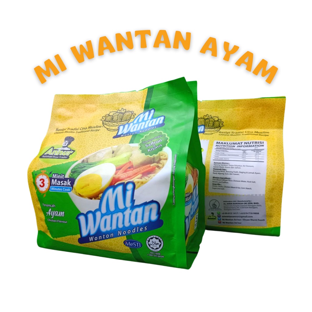 ANNUR MI WANTAN Mee Segera Ayam Halal Chinese Muslim Dry Wonton Noodles Kering Masak Tanpa Pengawet 5 Pax X 75g
