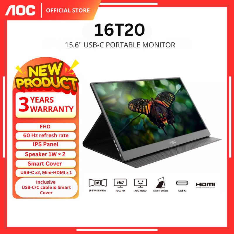 AOC 16T20 15.6" PORTABLE MONITOR (15.6" IPS FHD/60HZ /BUILT IN SPEAKER/USB Type C/Mini HDMI)