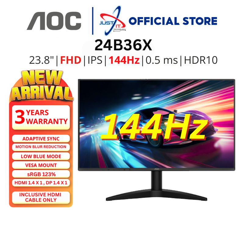 AOC 24B36X 23.8" MONITOR ( 23.8" IPS FHD / 0.5MS / 144HZ / ADAPTIVE-SYNC / HD MI+DP )