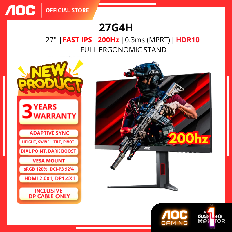 AOC 27G4H (0.3MS@200HZ)/27G42E (0.5MS@180HZ)/ 27" GAMING MONITOR (IPS FHD/Adaptive sync/HD MI + DP)