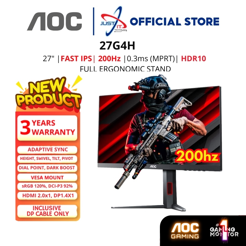 AOC 27G4H (0.3MS@200HZ) / 27G4X (0.5MS@180HZ) 27" GAMING MONITOR (27" IPS FHD / Adaptive sync / HD MI + DP )