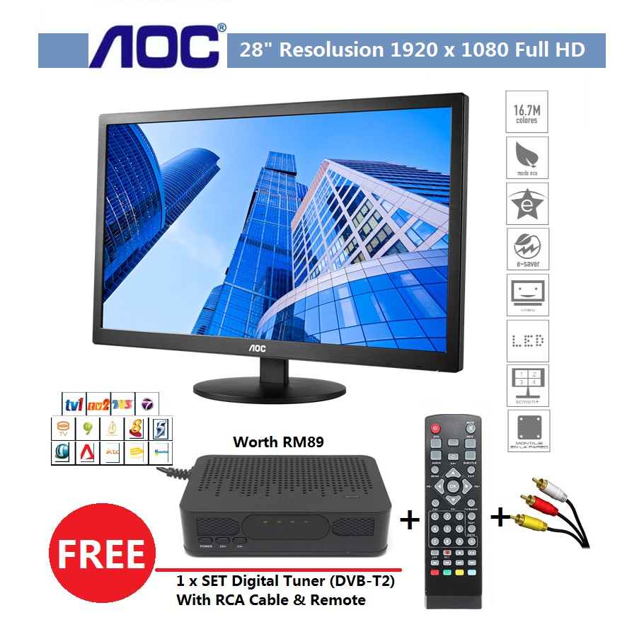 AOC 28 INCH M2870V GAMING MONITOR FREE DIGITAL TUNER