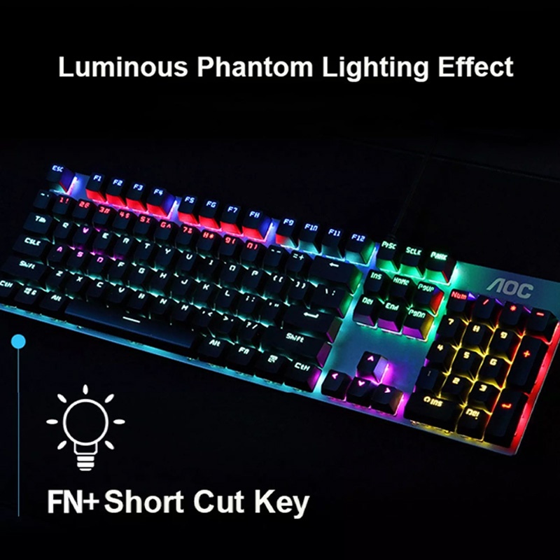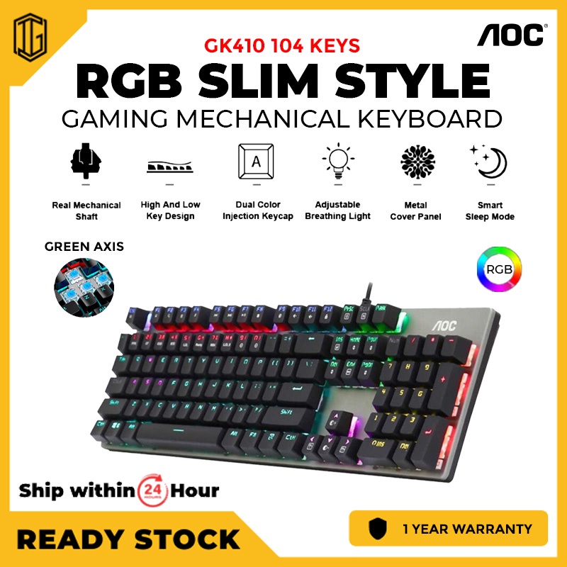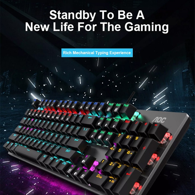 AOC GK410 Wired Gaming Mechanical Keyboard 104 Keys Green Axis High Low Key Design USB RGB Backlight Smart Sleep