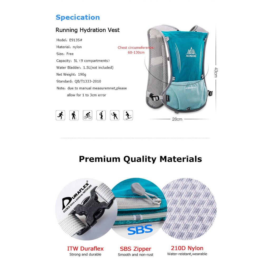 AONIJIE Marathoner Hydration Backpack (5L) E913S