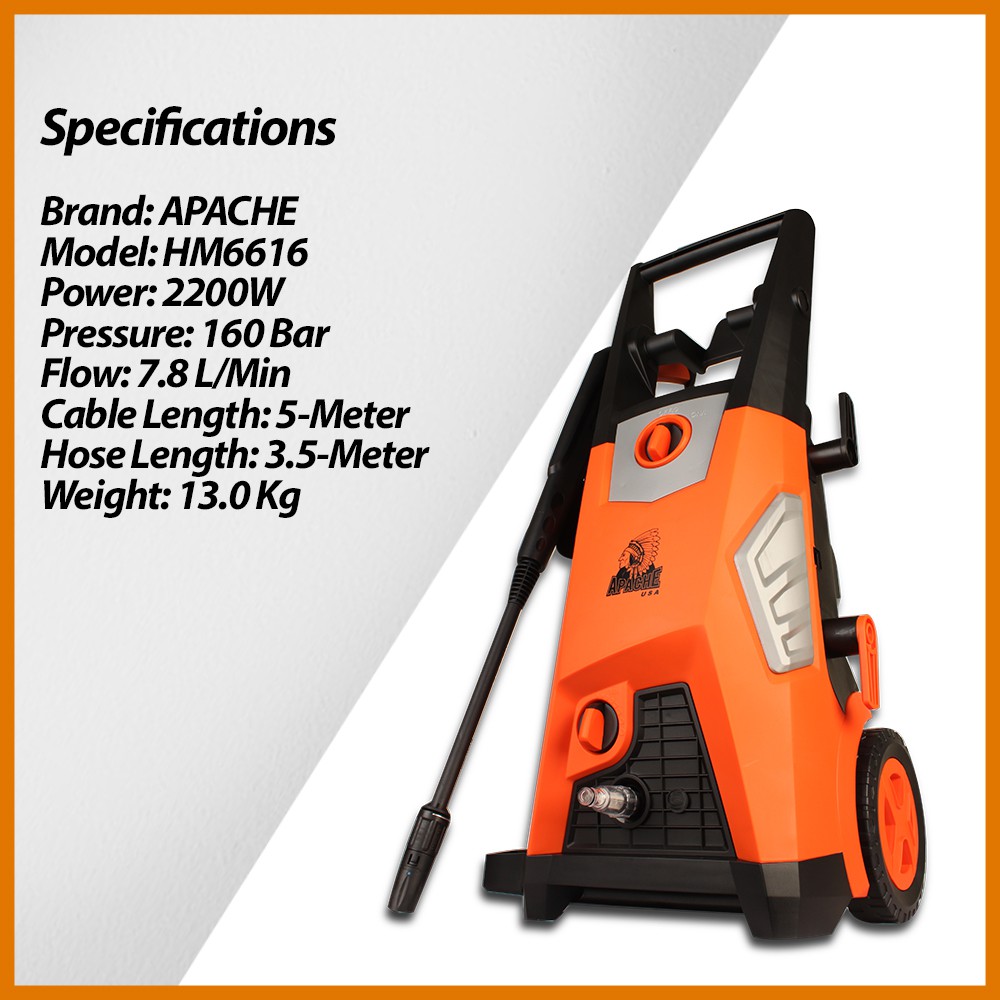 APACHE TurboSpray HM6616 160 Bar Professional Super Power High Pressure Cleaner Water Jet Sprayer Washer Car Wash