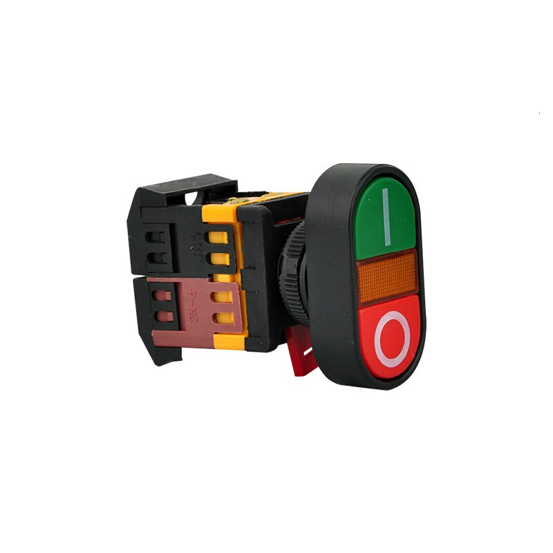 APBB-22N 220VAC YELLOW LIGHT ON / OFF START STOP MOMENTARY PUSH BUTTON SWITCH 22mm 1 NO 1 NC
