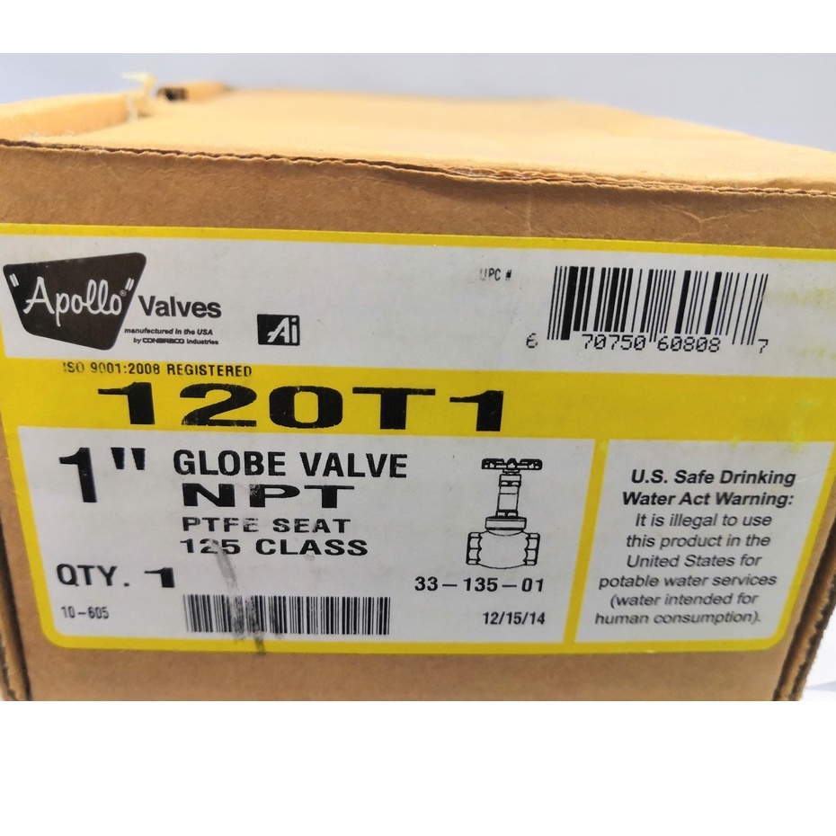APOLLO Globe Valve 125 Class, 1 Inch, NPT