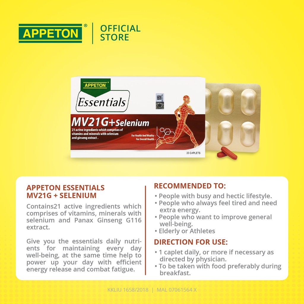 APPETON Essential MV21 + Selenium - Multivitamin dengan Selenium & Panax Gingseng untuk Nutrien Harian (30's)